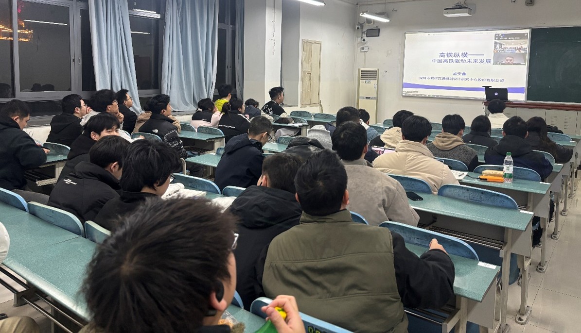 2026年1月5日晚,交通運輸學(xué)院開展《高鐵縱橫》前沿微課。邀請了深圳市城市交通規(guī)劃設(shè)計研究中心股份有限公司的孟安鑫高級工程師,為智慧交通2301-2302班的同學(xué)開展了題為《中國高鐵驅(qū)動未來發(fā)展》學(xué)術(shù)講座。