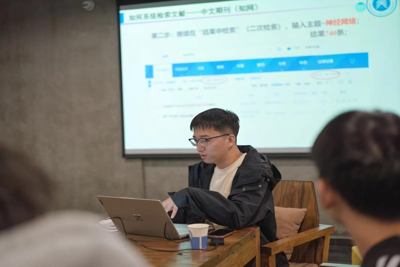 在輕松熱烈的學(xué)術(shù)氛圍中,王敏結(jié)合自身科研實(shí)踐,系統(tǒng)介紹了文獻(xiàn)檢索的常用數(shù)據(jù)庫與檢索平臺(tái),包括Web of Science、Google Scholar、知網(wǎng)等,并詳細(xì)講解了如何通過關(guān)鍵詞篩選、布爾邏輯運(yùn)算等方式高效定位目標(biāo)文獻(xiàn)。