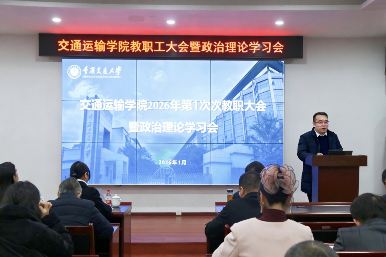 為全面總結(jié)交通運(yùn)輸學(xué)院2025年各項(xiàng)工作成效,精準(zhǔn)分析發(fā)展短板,明確2026年的工作方向,進(jìn)一步凝聚全院教職工共識(shí)與力量,1月9日,交通運(yùn)輸學(xué)在學(xué)院樓301會(huì)議室院隆重召開教職工代表大會(huì)。會(huì)議聽取并審議了院長工作報(bào)告、財(cái)務(wù)情況報(bào)告、工會(huì)工作報(bào)告,增選了教代會(huì)代表,認(rèn)真學(xué)習(xí)了黨的二十屆四中全會(huì)精神。