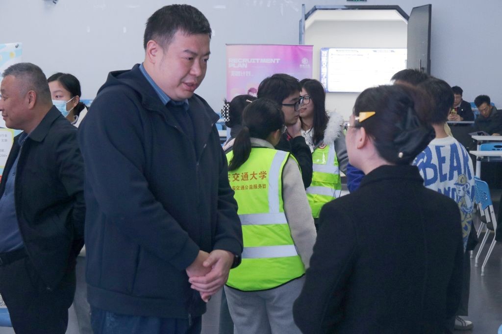 交通運(yùn)輸學(xué)院黨委書(shū)記魏銅鈴和學(xué)院班子成員,輔導(dǎo)員,任課教師一起到現(xiàn)場(chǎng)與各用人單位以及求職同學(xué)們進(jìn)行深入交流,了解單位招聘需求和學(xué)生求職意向,感謝用人單位對(duì)交通運(yùn)輸學(xué)院人才培養(yǎng)和畢業(yè)生就業(yè)的大力支持。交通運(yùn)輸學(xué)院張韓笑副書(shū)記鼓勵(lì)同學(xué)們要勇于向用人單位投遞簡(jiǎn)歷、展示自身優(yōu)勢(shì),多與用人單位交流自己感興趣的問(wèn)題,尋求適合自己的工作崗位,努力把握求職機(jī)會(huì)。學(xué)院畢業(yè)班輔導(dǎo)員劉楠楠、蔡志鵬和譚佳佳三位老師也來(lái)到了招聘會(huì)現(xiàn)場(chǎng)積極地向各用人單位推薦畢業(yè)生,同時(shí)也為前來(lái)面試的同學(xué)們答疑解惑和悉心指導(dǎo)。