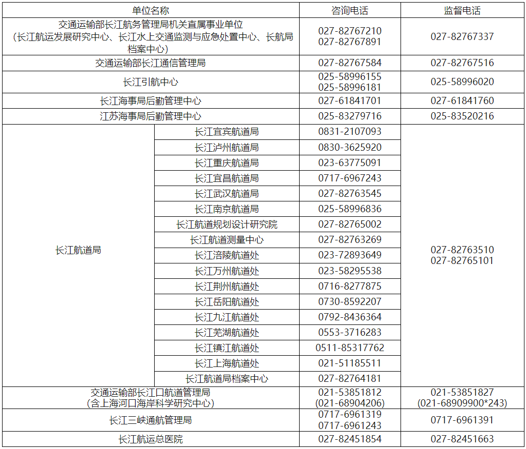 參加本次統(tǒng)一公開招聘的單位為長江航運(yùn)發(fā)展研究中心、長江水上交通監(jiān)測與應(yīng)急處置中心、長航局檔案中心、交通運(yùn)輸部長江通信管理局、長江引航中心、長江海事局后勤管理中心、江蘇海事局后勤管理中心、長江航道局、交通運(yùn)輸部長江口航道管理局(含上海河口海岸科學(xué)研究中心)、長江三峽通航管理局、長江航運(yùn)總醫(yī)院。各招聘單位崗位信息和相關(guān)要求詳見《交通運(yùn)輸部所屬事業(yè)單位2026年度第二批統(tǒng)一公開招聘崗位信息表》(附件1,以下簡稱《崗位信息表》)。