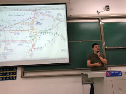 活動由運輸工程系主任陳堅教授主持,陳主任首先介紹了此次活動的目的和環(huán)節(jié),并對兩位企業(yè)專家進行了簡介。賈國偉站長結合自身專業(yè)和工作選擇經歷,用視頻與圖片的方式從鐵路運輸的歷史現(xiàn)狀、中國鐵路總公司的職能架構、重慶伏牛溪車站的業(yè)務流程以及鐵路運輸行業(yè)對人才的需求進行講解。
