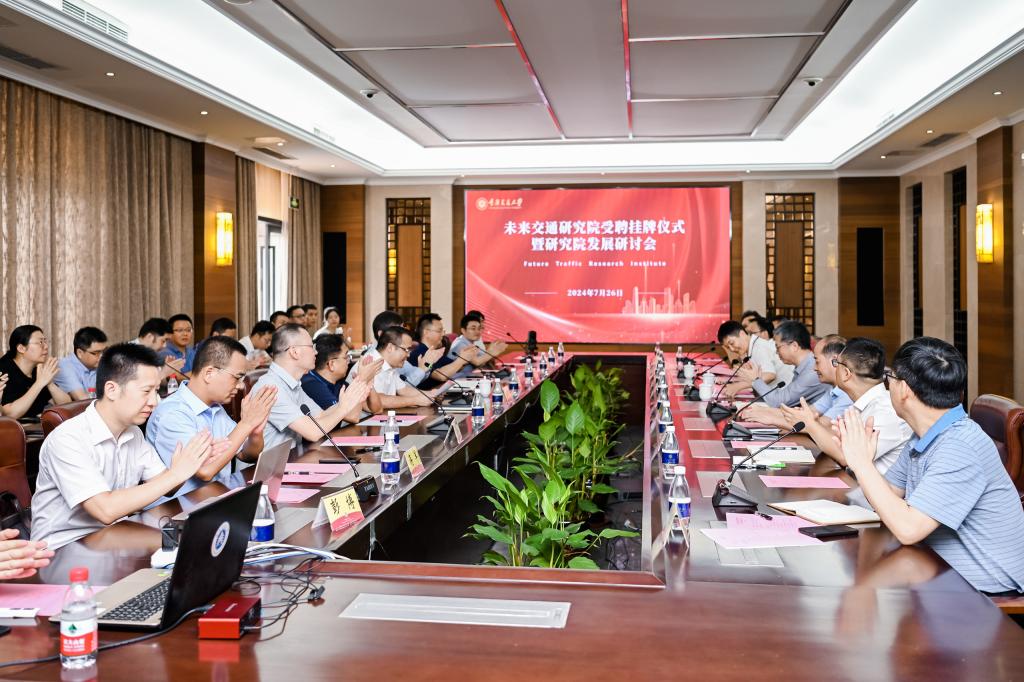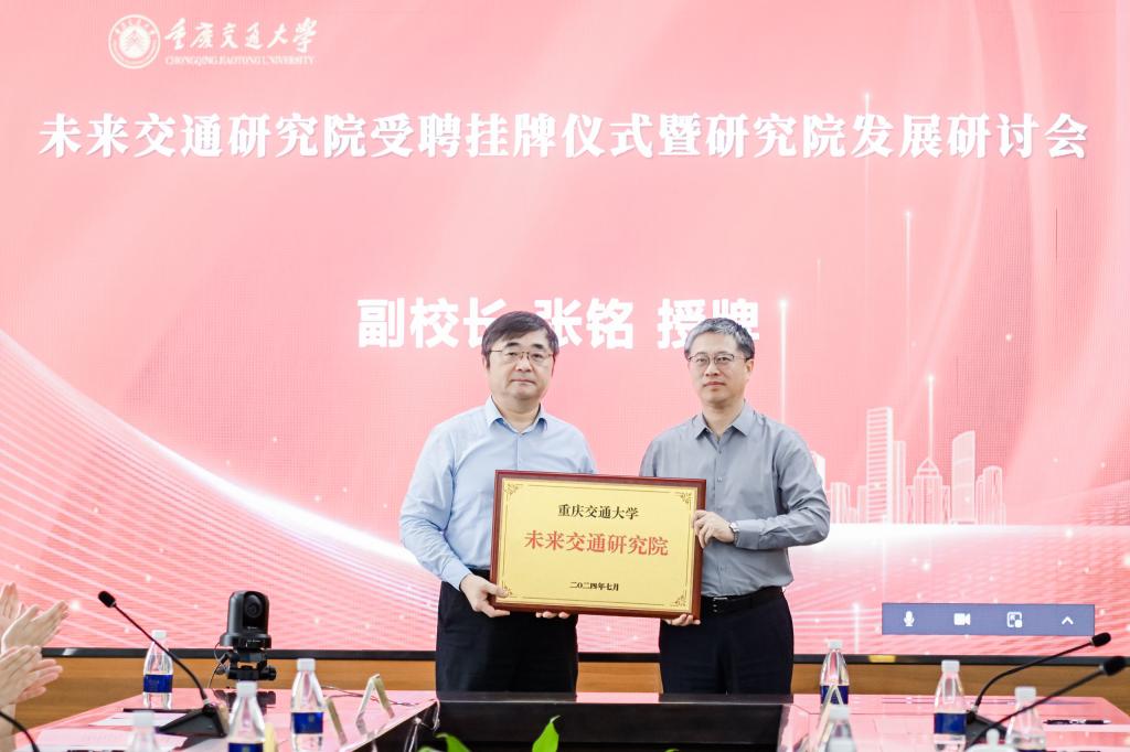會(huì)上,副校長(zhǎng)張銘教授代表學(xué)校向未來(lái)交通研究院正式授牌,黨委副書記鄭旭煦教授為未來(lái)交通研究院院長(zhǎng)楊曉光教授頒發(fā)了聘書。